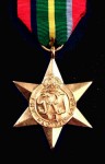 Pacific Star. Awarded to those who served in the Far East during WWII. Die struck in bronze and supplied complete with a length of the correct ribbon.