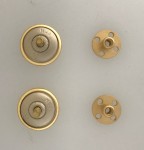 17mm.These gilt metal buttons are specially fitted with a srewback fitting that facilitates the attaching of shoulder boards to tunics. 17mm pebbled aluminium buttons complete with brass fittings.