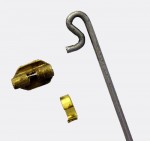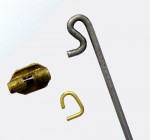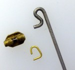 This pin set consists of a brass hinge and hook and a 65mm steel 'shepherds crook' style needle pin. This is the correct WWII style German pin and can be used on most combat breast badges. Some slight adjustment and trimming may be needed to achieve a perfect fit as badges vary in size. Very useful for repairing broken or incomplete awards.