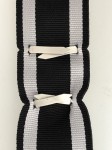 This bar was awarded to recipients of the 1914 Iron Cross 2nd Class who were subsequently awarded the 1939 Iron Cross during WWII. This die struck example is finished in matt silver plate. The reverse has the makers code in relief and is fitted with four prongs with which the award is fixed to its ribbon. Supplied with a length of 1914 iron Cross ribbon.