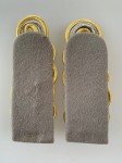 Interwoven gold and aluminium braid mounted onto a grey wool backing. Per pair.