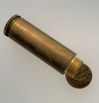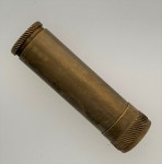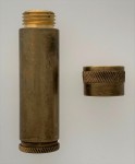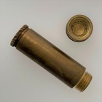 This is an exact replica of one of the the containers for the cyanide capsules that were manufactured by the S.S. and issued to S.S. personnel and top ranking Nazi officials during WWII. It has been recorded that Heinrich Himmler personally offered these to those individuals who remained in Hitlers Berlin bunker in April 1945 and Himmler took his own life by this very method. The tubular container is turned from brass and has a threaded lid which is stamped with the original manufacturer, SS contract number and date: 'Tesch u. Stabenow, Hamburg, S.S. 77/42'. The glass ampoule in the picture is for reference only and is NOT INCLUDED.