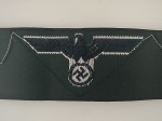German Wehrmacht WWII enlisted men's military cloth uniform insignias were either woven or machine embroidered. Enlisted men's badges were never hand embroidered during the Third Reich or WW2. Hand embroidered versions are sometimes offered elsewhere because they require less 'up front' investment being hand made in small quantities.